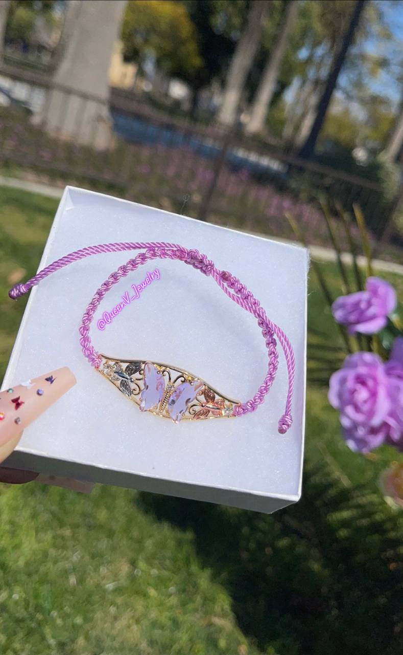 Lavender Glass Butterfly Thread Bracelet🦋